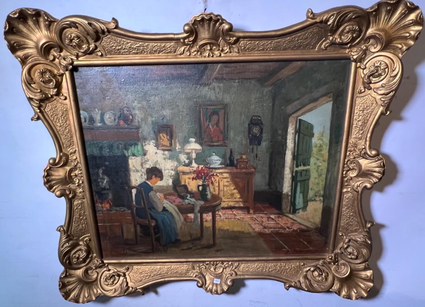 The clothmaker at work in the summertime ( oil on canvas )