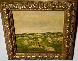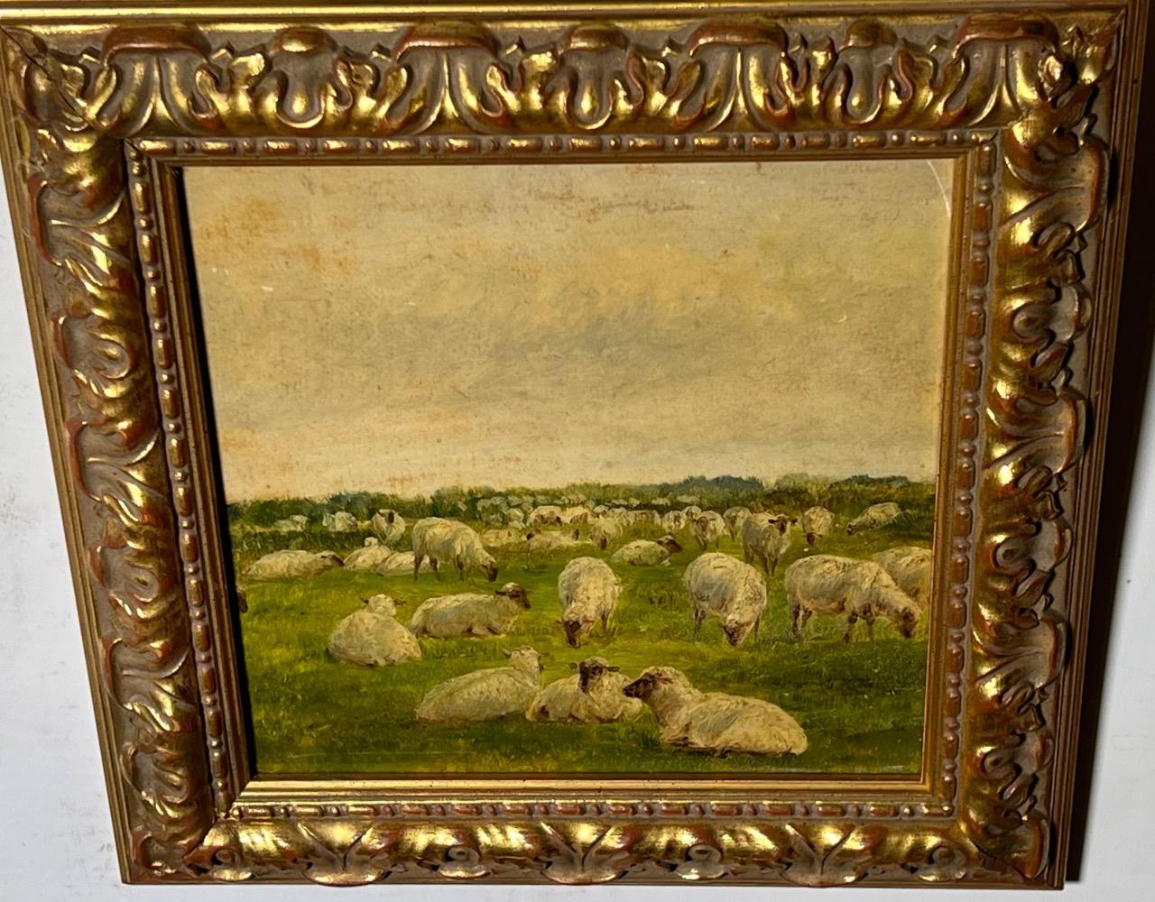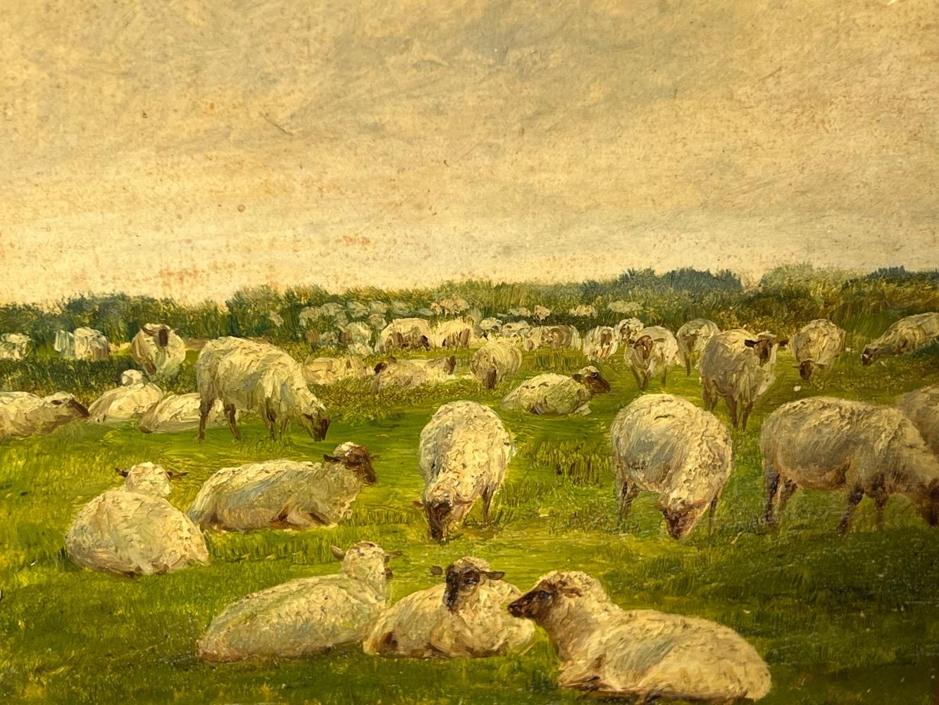 The happy sheep in the summertime ( oil on paper on panel )